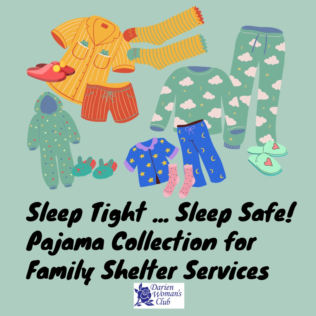 We will be collecting and donating pajamas, pajama pants and nightgowns for children, women and men in sizes 3 Toddler through Adult 2XL. All items will be donated to Family Shelter Services. All items should be brought to our November November 1st General Meeting. Please DO NOT wrap any donated items. Items can also be dropped off at the homes of Barb S. or Marian K.